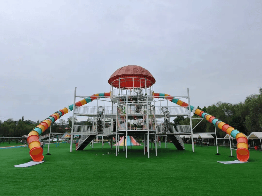 飞天城堡由钢架、攀爬网、龙洞以及各种滑梯组合而成。游客可以克服困难,战胜困难成功登顶,充满了自豪感和满足感。刺激的滑梯是飞天城堡的一大亮点。从高处飞速滑下,感受风在耳边呼啸,瞬间的失重感带来无尽的兴奋与刺激。无论是直线滑梯还是螺旋滑梯,都能让孩子们体验到速度的快感。