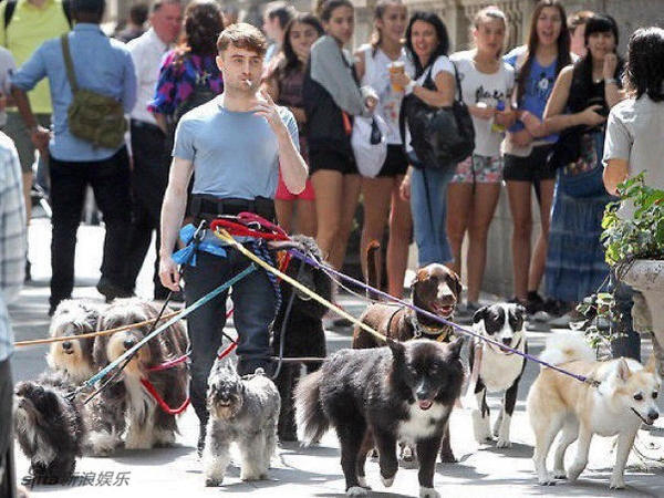 新浪娱乐讯 22日,网友晒出一组照片,调侃好莱坞男明星的花样遛狗方式。奥兰多·布鲁姆把狗绳斜跨在上半身,遛娃遛狗两不误,丹尼尔·雷德克则“腰缠万狗”。
