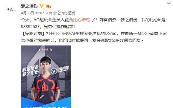 目前比心陪练是游戏陪练行业的领头羊,吸引了众多职业选手加入,拥有3000万用户,300万大神,包括iG、FPX、eStarPro、AG超玩会、4AM在内的冠军战队职业选手都入驻了比心陪练。AG超玩会的梦泪,在比心上的接单价格是520一小时。 Comment by chao: 游戏陪练作为一种新兴职业,吸引众多职业选手加入。比心陪练是游戏陪练行业的领头羊,拥有3000万用户,300万大神,包括iG、FPX、eStarPro、AG超玩会、4AM在内的冠军战队职业选手都入驻了比心陪练。AG超玩会的梦泪,在比心上的接单价格是520一小时。