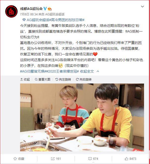 就在112月6日的凌晨,AG超玩会的官博突然发文了,声称有黄牛正在贩卖选手的个人信息,再结合最近经常出现“粉丝”跑到基地门口求合照的情况,应该是选手信息被泄露给私生饭无疑了。对此AG超玩会官方表示十分愤怒,坚决一切私生行为。而这些私生粉们堵基地的行为也已经严重干扰到选手们的训练了。