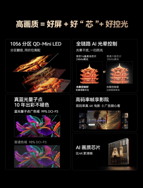 其98% DCI-P3色域的覆盖使得色彩更加鲜艳丰富,尤其在观看电影时,色彩的表现非常生动自然。加之京东方的EPQ画质增强技术,使得色彩的还原更加精准。