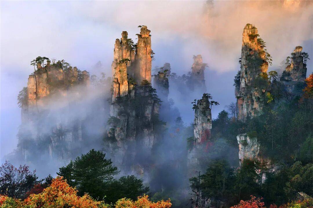 1992年12月,以张家界国家森林公园为核心的武陵源地区因奇特的石英砂岩大峰林被联合国列入《世界自然遗产名录》。