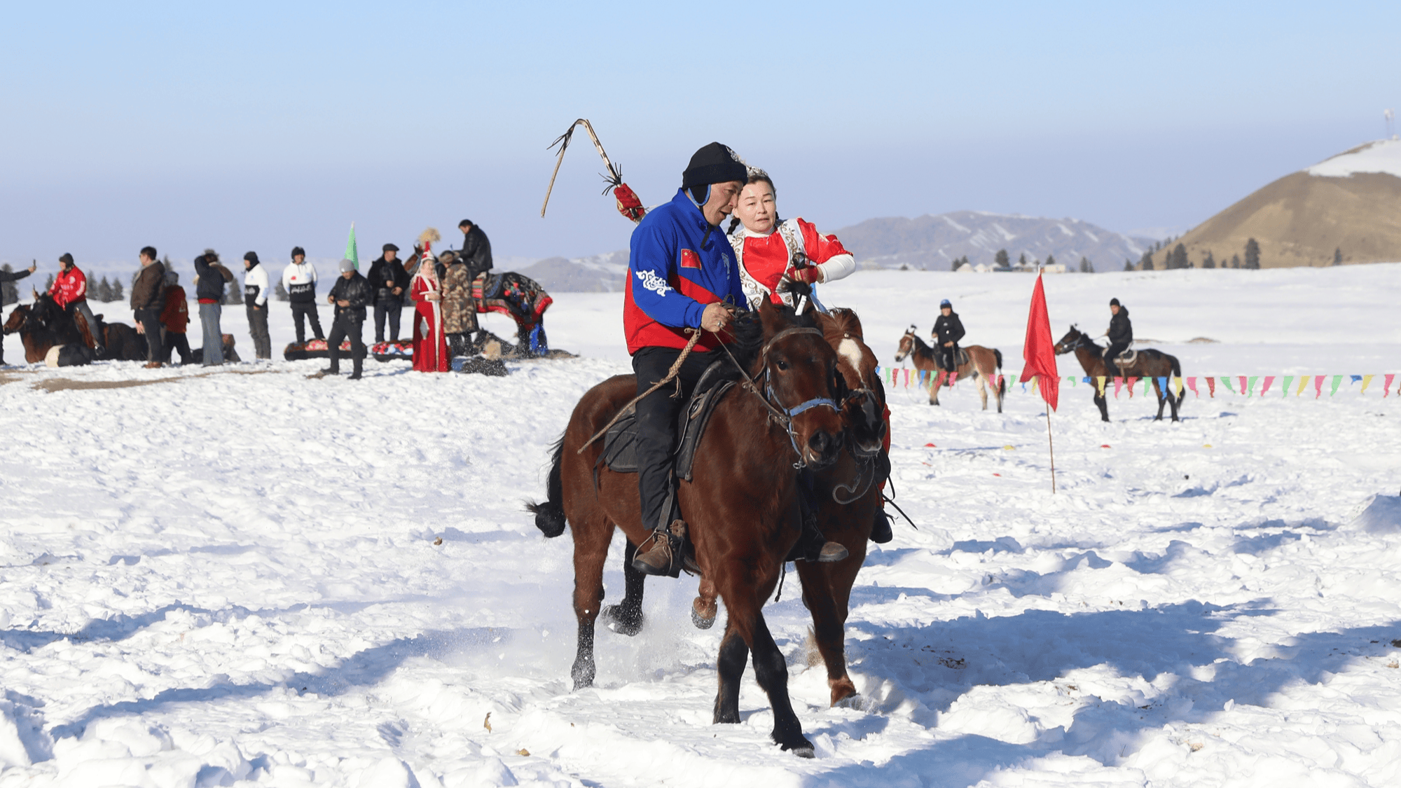 精彩的文艺表演拉开了活动序幕,随后姑娘追、马上拾银、吃羊头比赛、“庖丁解羊”等民俗活动轮番进行,雪地足球、雪地挖宝等竞技游戏项目让游客乐在其中,尽享冰雪带来的欢乐。