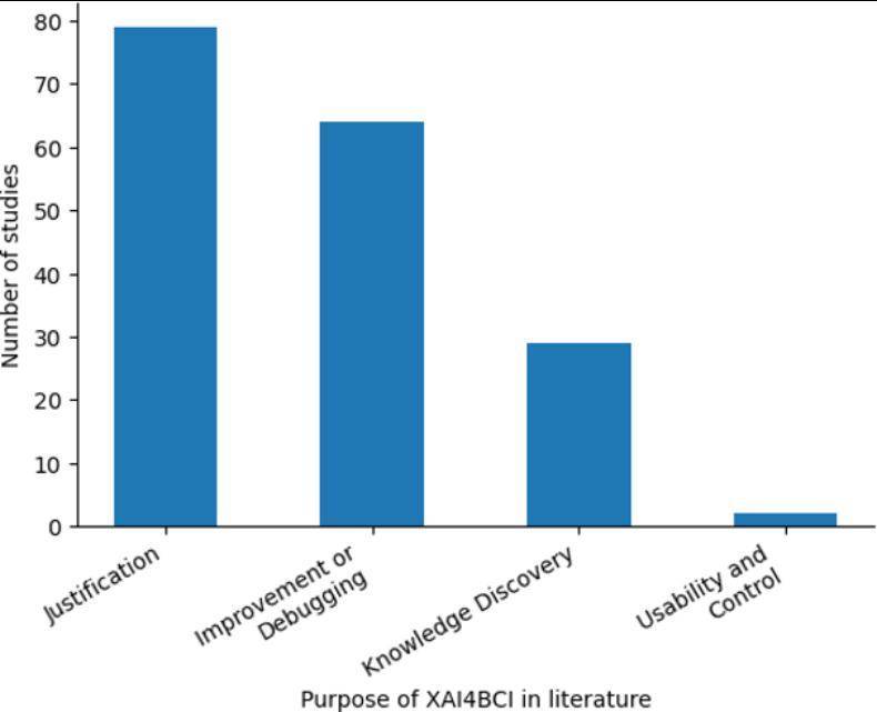 ▷图4:采用可解释人工智能进行脑机接口认知任务的趋势。在可解释性方面,运动和图像是脑机接口最多的研究领域之一。