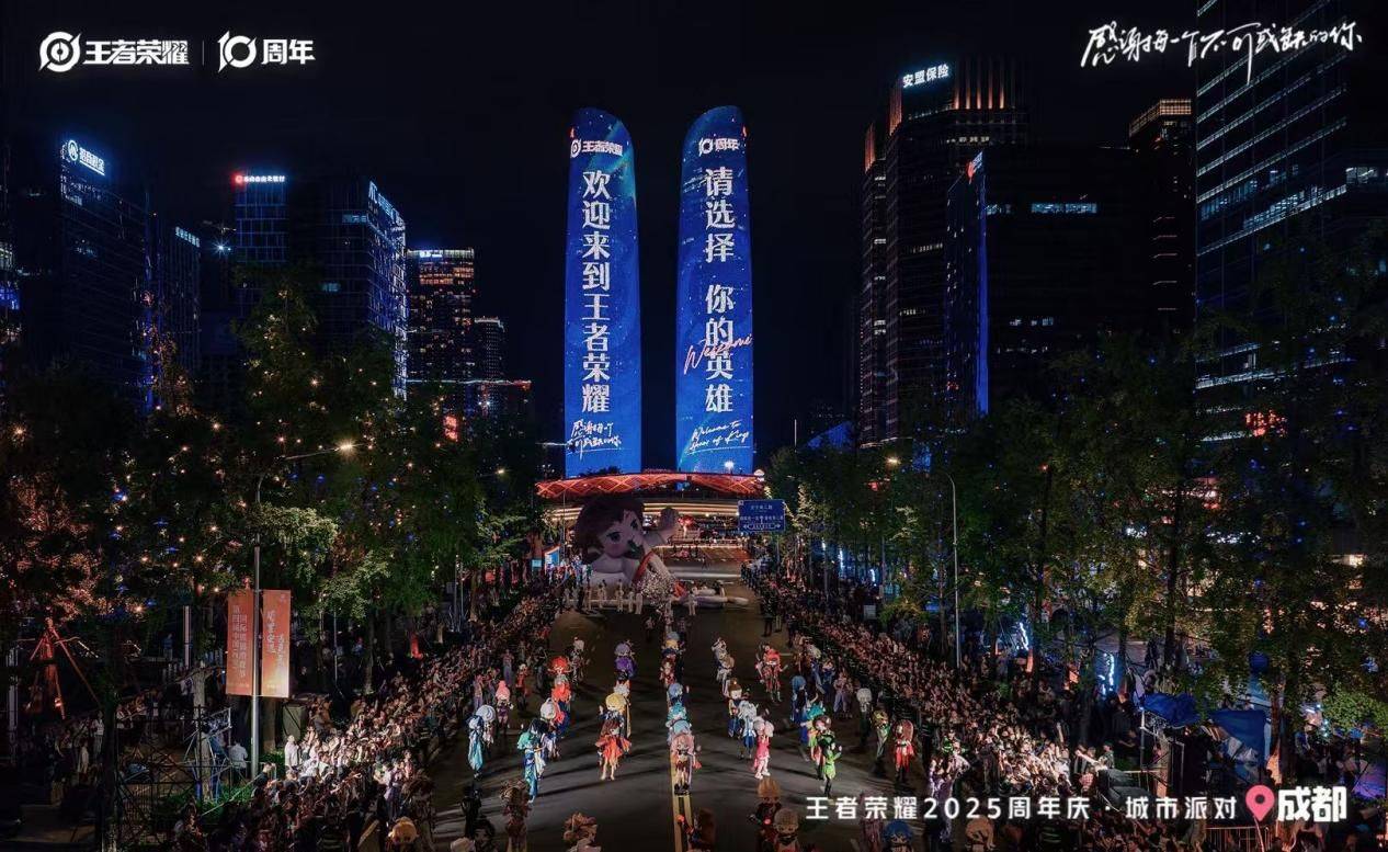 另一个诞生于成都高新区的顶级IP——《王者荣耀》也榜上有名,其在成都落地的十周年庆典,打造了持续一个月的数字文创盛宴,吸引超80万人次游客参与,“2025王者荣耀共创之夜”全网累计观看超3.56亿人次,在互联网平台多榜累计热搜线余个,数据突破王者荣耀相关节目历史记录,进一步推动电竞产业与城市文化、消费场景深度融合,激活城市经济动能。